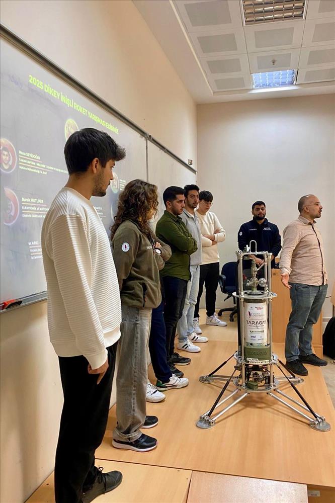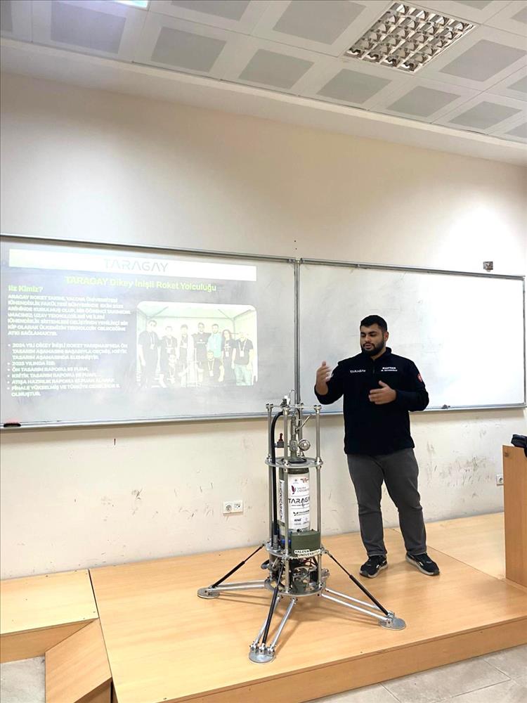 Renowned for their achievements in technology and engineering, the TARAGAY Rocket Team took the stage at Yalova University Faculty of Engineering on October 23, 2025, sharing the story behind their finalist success in the TEKNOFEST Vertical Landing Rocket Competition.