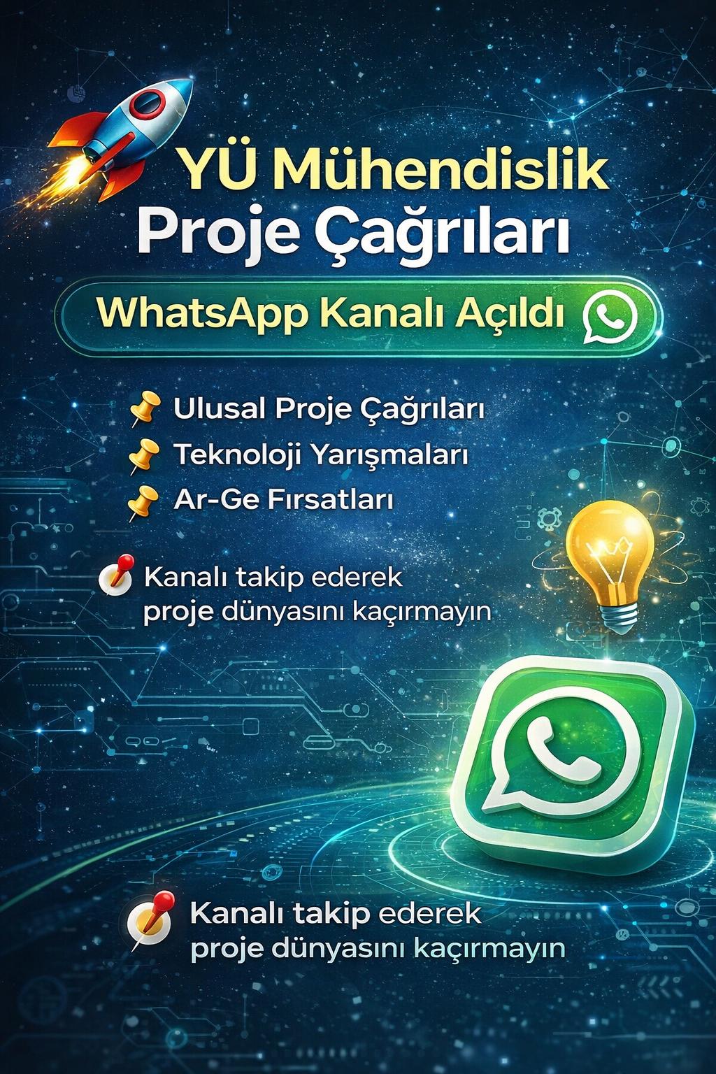 Yalova Üniversitesi Mühendislik Fakültesi bünyesinde, öğrencilerimizin ve araştırmacılarımızın ulusal proje fırsatlarına daha hızlı erişebilmesi amacıyla “YÜ Mühendislik Proje Çağrıları” WhatsApp kanalı oluşturulmuştur.
