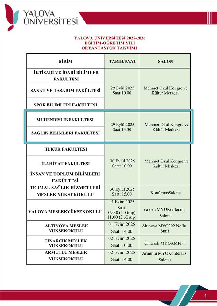29.09.2025 13:30 Yalova Üniversitesi Merkez Yerleşkesi - Mehmet Okul Kongre ve Kültür Merkezi Tanıtım Günü