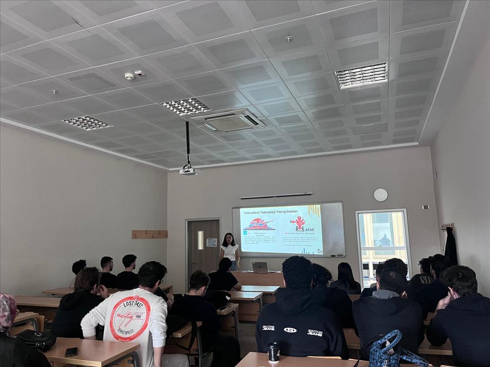 Toplantı, 24 Kasım Pazartesi günü Fakültemiz D-312 salonunda düzenlendi ve öğrencilere TEKNOFEST’in geniş yarışma yelpazesi ile takım kurma süreçlerine ilişkin önemli bilgiler sunuldu.