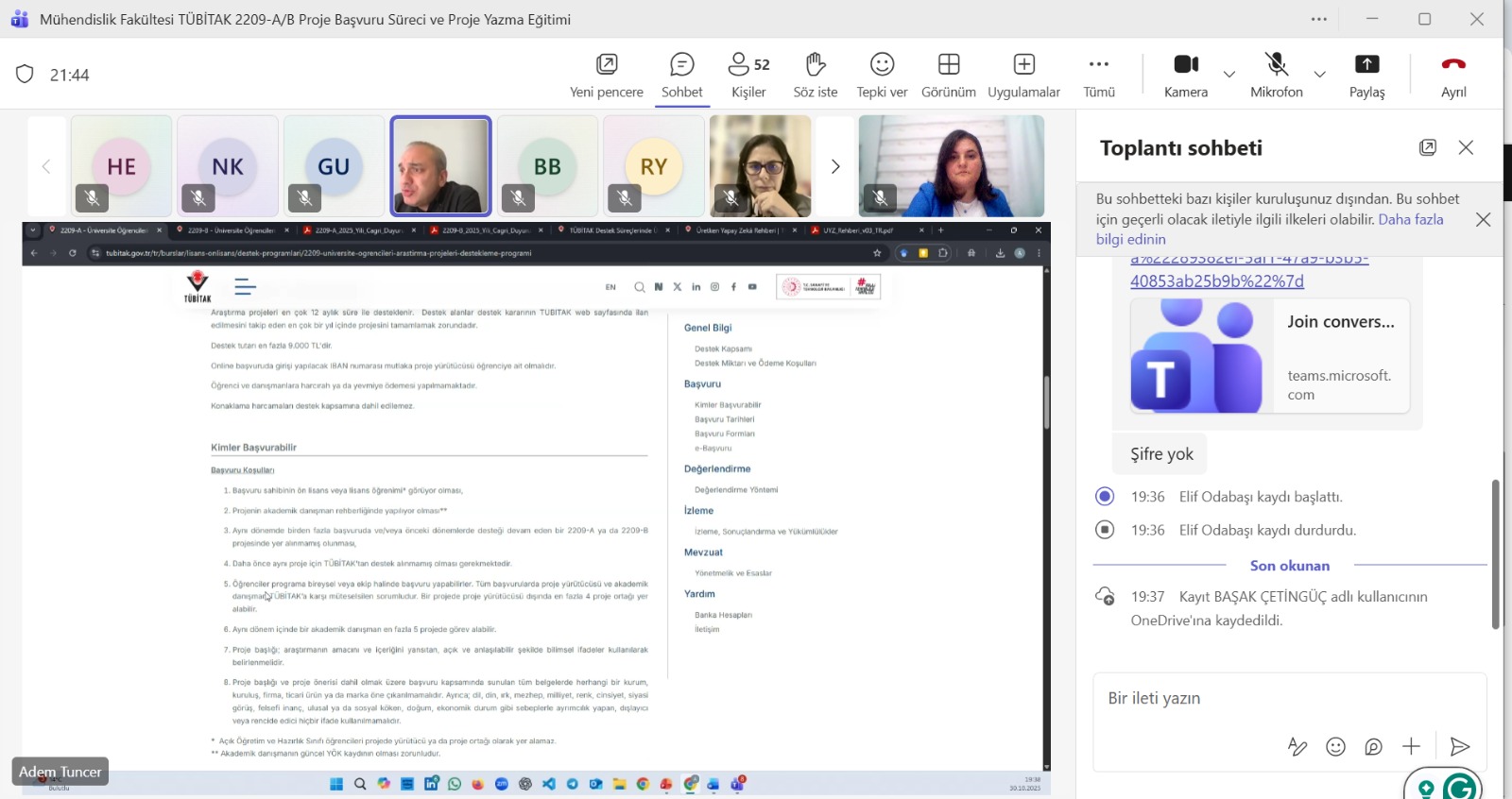 Mühendislik Fakültesi, 30 Ekim 2025 tarihinde öğrencilere yönelik olarak çevrim içi “TÜBİTAK 2209 Proje Yazma Eğitimi”ni gerçekleştirdi.